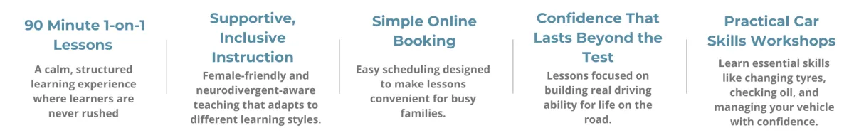 With calm, structured guidance and longer 90-minute lessons, learners have the time to practise properly, ask questions, and develop real skills behind the wheel.